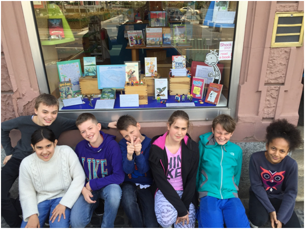 Die Lesescouts der Klasse 6c, die sich ein Mal pro Woche treffen um Werbung für das Lesen zu machen, begaben sich am 28.04.15 mit ihrer Deutschlehrerin Frau Hofmann zum Räubernest, einem Buchladen in Bornheim, um sich an der Aktion „Gestalte mein Schaufenster“ zu beteiligen.