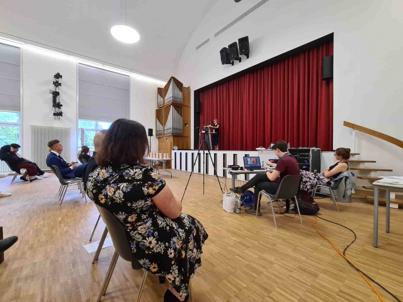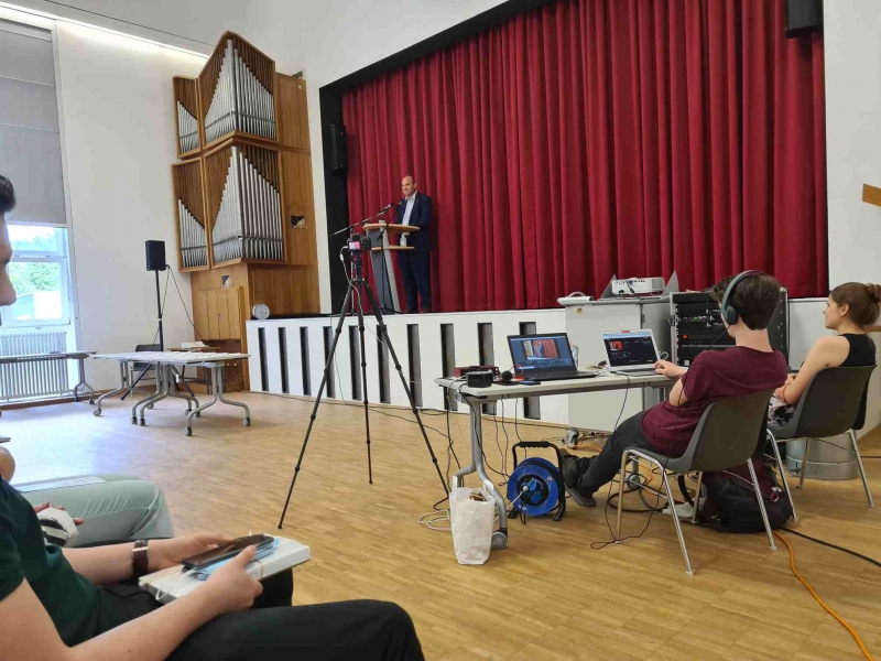 Das „Stream-Team“ Tabea und Julius ermöglichten die Live-Übertragung der Veranstaltung, so dass alle, die wegen der Abstandsregeln nicht dabei sein konnten, dennoch die Akademische Feier mitverfolgen konnten.