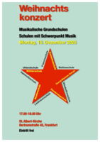 Am Montag, 15.12. von 17-18 Uhr tritt die Musikklasse 5d beim jährlichen Adventskonzert der Frankfurter Schulen mit Schwerpunkt Musik zusammen mit den musikalischen Grundschulen in der Kirche St. Albert in der Bertramstraße 45 auf.