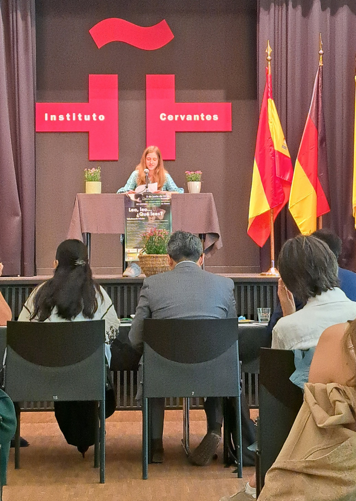 Zum 12. Mal in Folge fand das großartige Lesespektakel statt, das Gäste, wie zum Beispiel die Generalkonsuln von Kolumbien und Spanien und Landesvertreter aus Wiesbaden sowie des Schulbuchverlages Klett geladen hatte, um die ersten drei Gewinner/innen in den Niveaustufen A1-B2 zusammen mit Hauptorganisatorin Celia Cid zu prämieren.