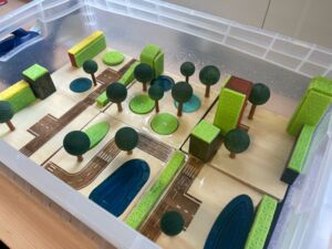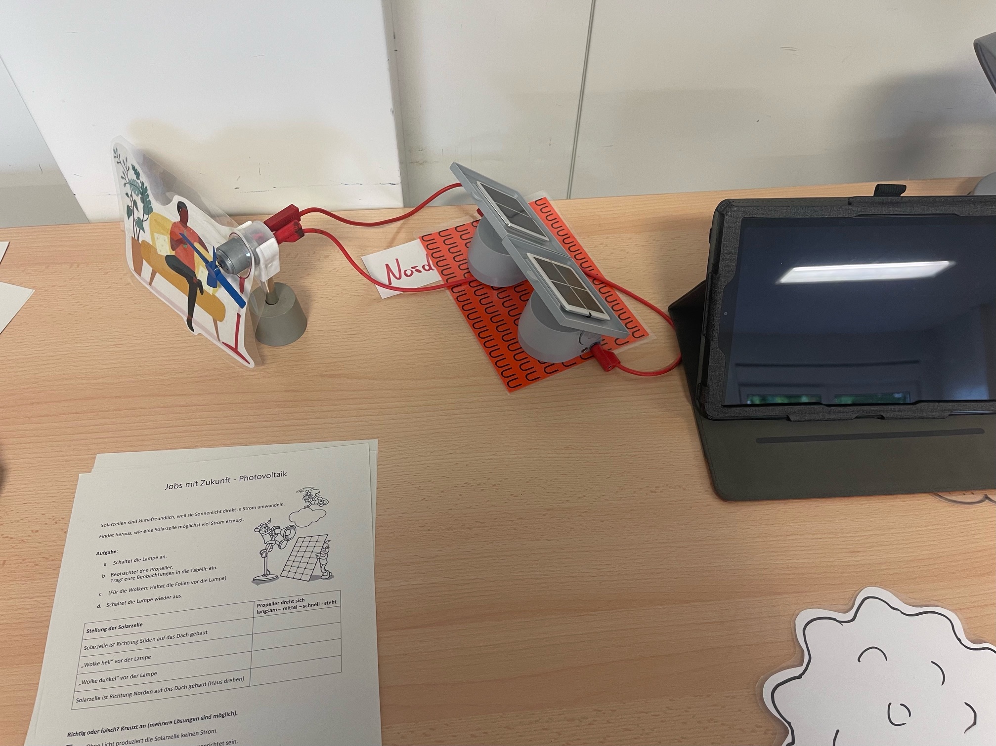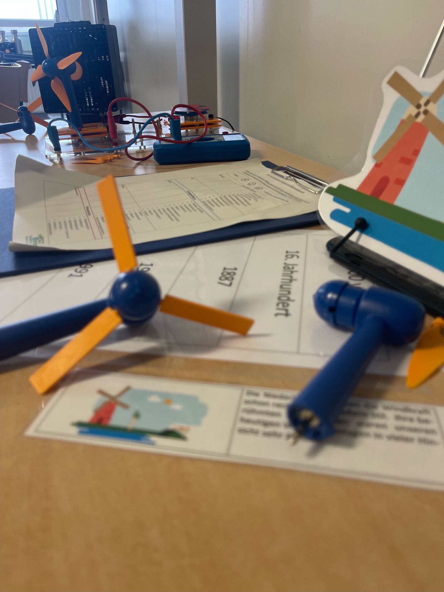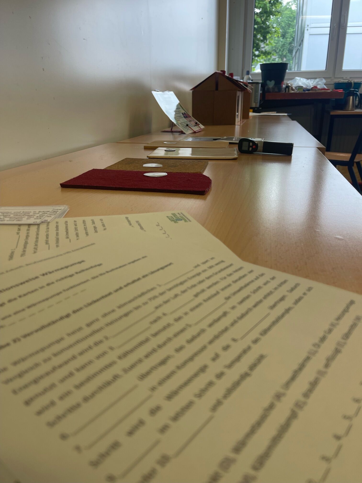 Zudem konnten die SuS durch ein Experiment herausfinden, welch großen Unterschied die Beschaffenheit von Fenstern ausmachen. Außerdem gab es noch Modelle von Klimaeffizienten Häusern oder auch Windkraftanlagen.
