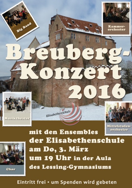 Kommen Sie zum Breuberg-Konzert 2016 in die Aula des Lessinggymnasiums! Am 3. März um 19 Uhr geht es los. Wir freuen uns auf Sie!