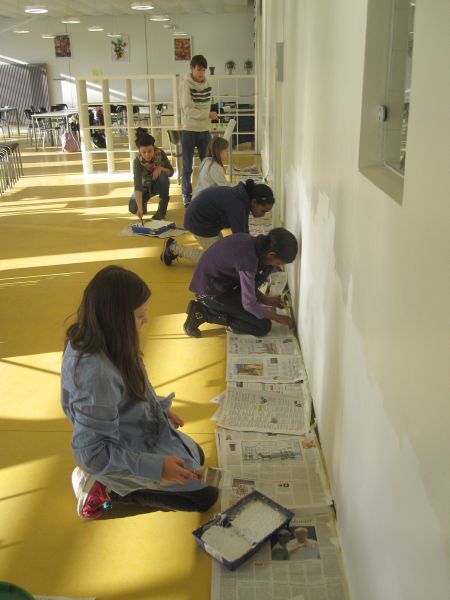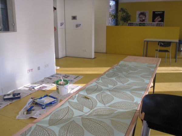 Am Freitag hat das Kunfood-Team begonnen eine Wand in der Cafeteria zu tapezieren. Es soll schöner und gemütlicher werden - für alle, die dort essen und sich aufhalten!