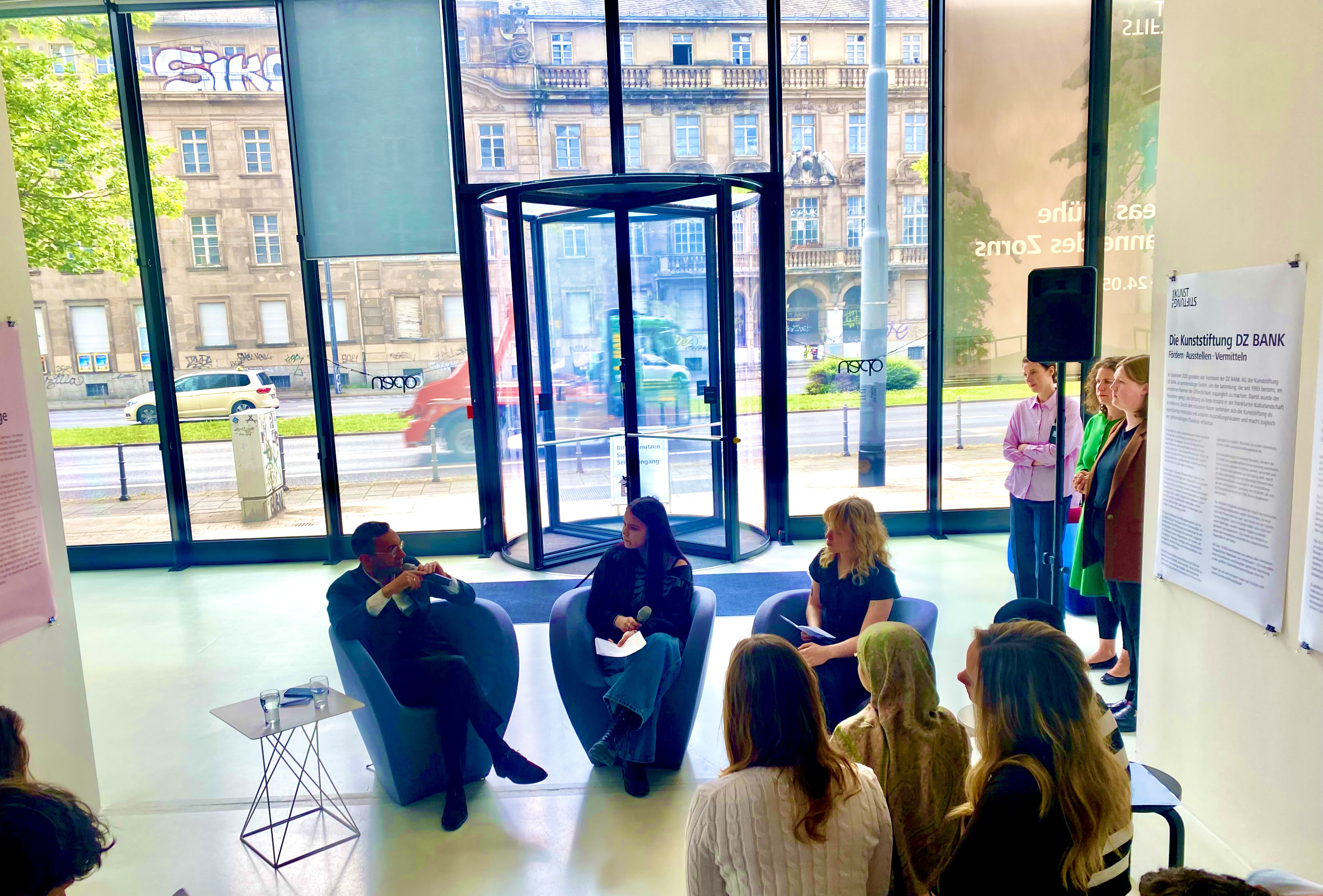 Knapp 100 Jugendliche und junge Erwachsene der zwölften Jahrgangsstufe des Goethe-Gymnasiums, der Liebigschule, der Elisabethenschule sowie der Max-Beckmann-Schule beteiligten sich an der Diskussion. Dem Interview ging ein Workshop voraus. Währenddessen wurde die Ausstellung besucht, und im Anschluss fand ein Austausch über den Stand von Kunst in unserer Gesellschaft und ihre Bedeutung in der Politik statt, bei dem auch die Interviewfragen für den OB entstanden sind.