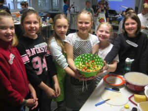 Nachdem wir besprochen hatten, was jeder mitbringen sollte, ging es am 27.10.17 los. Frau Beck vom Bundeszentrum für Ernährung hat uns sehr viel erklärt über gesundes Essen und wie man es zubereitet. In verschiedenen Gruppen haben wir Smoothies, Gemüseteller, Nudelsalat und Sandwiches hergestellt.