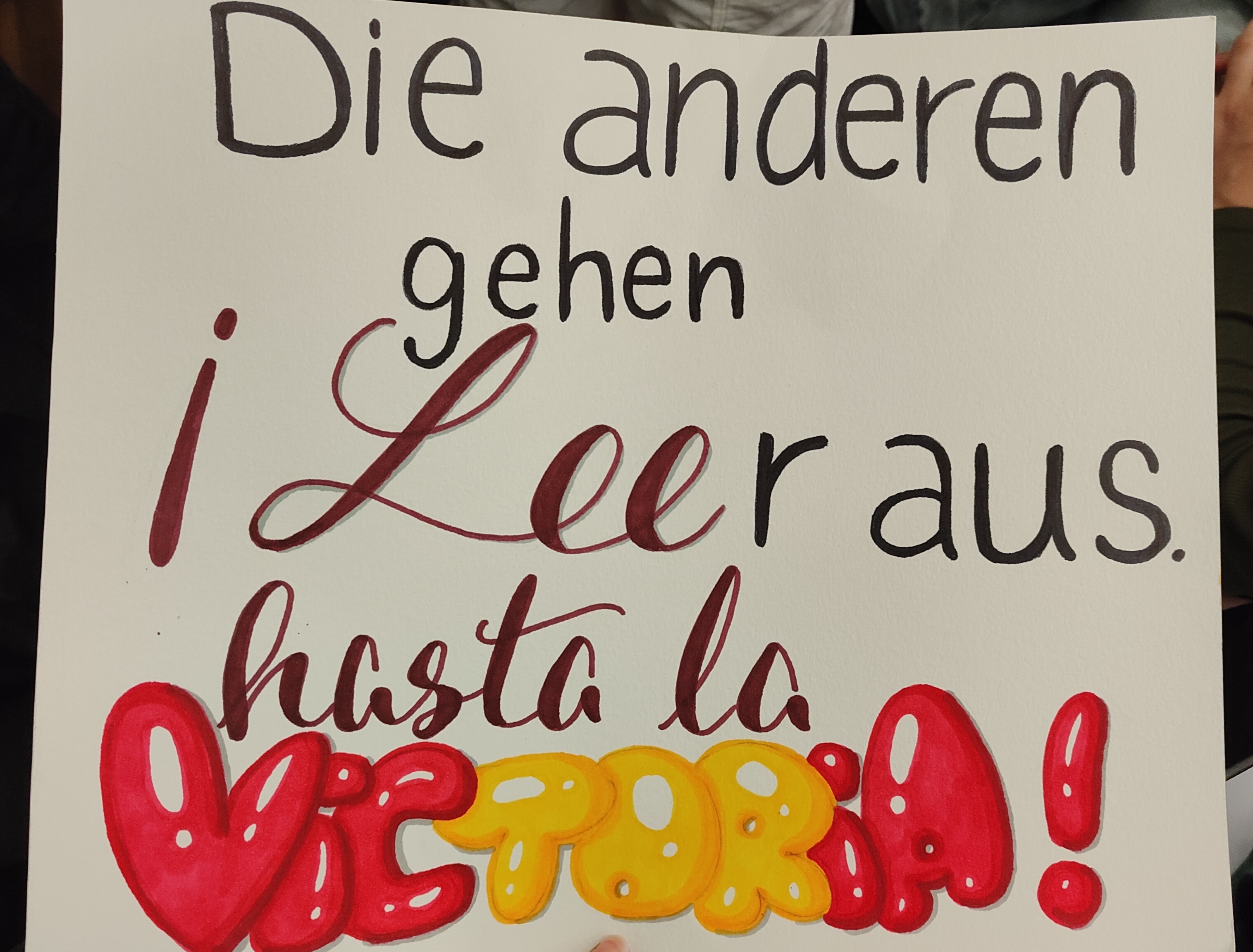 Die Unterstützung der Freundinnen, die als Begleitung mitkamen und sogar ein großartiges Plakat (siehe Foto) gestaltet haben, hat dazu sicherlich einen Beitrag geleistet.