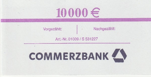 Einmal sah ich auch, wie das Geld in die Bank geholt wird. Ein Geldtransporter kam, und ein Mann brachte das Geld in einer "Schubkarre" herein. Wir begleiteten ihn zu den Tresoren. Wir packten das Geld (meistens Münzen in Rollen) in den Tresor. Der Geldtransporter brachte auch Noten aus der Filiale mit.