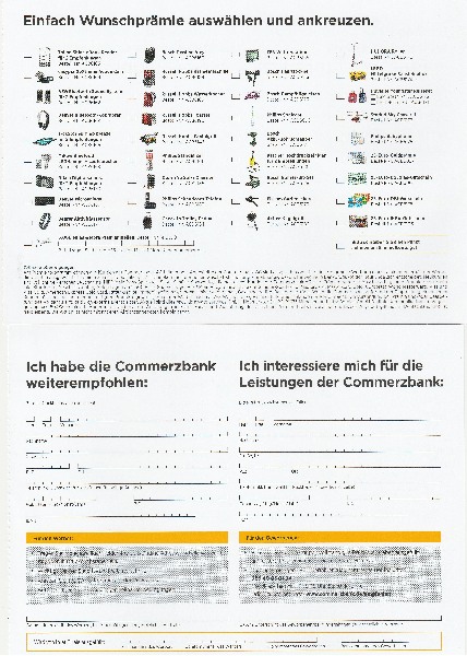 Wenn man Commerzbank an anderen Menschen weiterempfiehlt, die sich deshalb so entscheiden, dass sie ihr erstes Konto bei der Commerzbank eröffnen möchten, bekommt man die unten dargestellten Prämien.