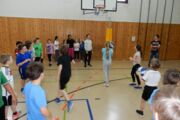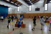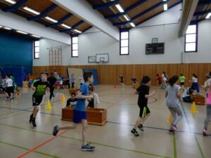 alle Hütchen von den Kästen abwerfen, beim Balltransport über 7 Minuten lang so viele Bälle wie möglich transportieren, beim Korbjäger auf Zeit so viele Korbwürfe wie möglich werfen und beim Seilspringen über 7 Minuten lang die meisten Sprünge schaffen. Dazwischen konnten sich die Kinder an der Saft- und Brezelbar stärken, die durch die Eltern der Klassen organisiert wurde. Vielen Dank!!!