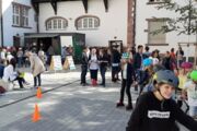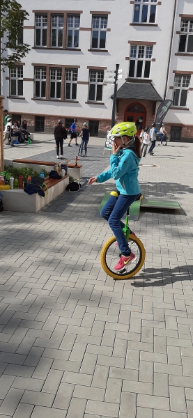 Einige ganz Mutige trauten sich sogar auf Einräder. Der Schulhof glich einem Skatepark!