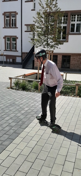 WHEELUP! ist ein Förderprogramm der AOK Hessen und dient der Förderung von Bewegung und Wahrnehmung sowie der Verkehrserziehung und Mobilitätsbildung. Dabei wurden zahlreiche Klassen im Umgang mit verschiedenen Rollsportgeräten geschult. Dreizehn Lehrer ließen sich in einer speziell entwickelten Fortbildung zum WHEELUP!-Mentor ausbilden. Dabei ging unser Schulleiter, Herr Neureiter, mit bestem Beispiel voran.