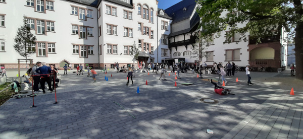 Wo: Pausenhof (kleine Sporthalle bei schlechtem Wetter)