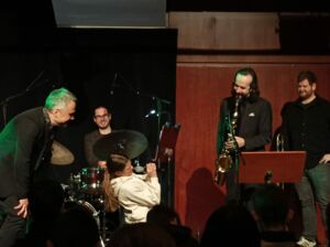 Die Klassen durften bei den Liedern mitsingen, klatschen, tanzen und mehr. In der professionellen Jazzband spielte auch Peter Klohmann, ein berühmter Saxophonist. Die Musiker waren beeindruckt von der mutigen Schülerin aus der 6a namens Alina, die sich getraut hat, auf die Bühne zu kommen und dem Saxophonist Töne vorzugeben. Viele berühmte Lieder aus der Jazzgeschichte wurden gespielt, z.B. 'Fly me to the moon' und 'When the Saints go marching in'. Nach dem Konzert konnte die Klasse 6a die Eröffnung des Weihnachtsmarktes genießen, und passend dazu fing es an zu schneien.