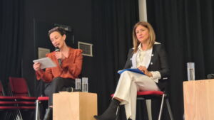 Die Schülerin Astia und der Schüler Hans moderierten professionell das Gespräch.