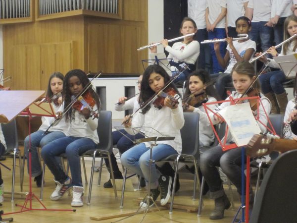 Am Donnerstag, 23. Januar 2014 haben die Musikklassen 5 um 10:00 Uhr und um 11:30 Uhr ein Konzert für die Grundschüler der Münzenbergerschule, der Merianschule, der Liebfrauenschule, der Schwarzburgschule, der Elsa-Brändström-Schule, der Engelbert-Humperdinck-Schule, der Liesel-Oestreicher-Schule sowie der Holzhausenschule gegeben. Die Konzerte dauerten jeweils eine Stunde. Vielen Dank den Musiklehrkräften Frau Dworak und Herrn Fürsicht sowie Frau Weyrich-Fischer und Frau Winn für die Organisation und Frau Kaltwasser und ihren Schülerinnen und Schülern für Theatereinlagen.