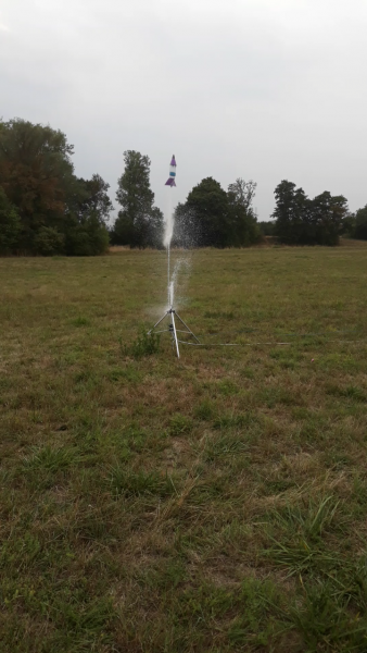Dann wurden die Raketen mit Wasser gefüllt und mit Luftdruck beschleunigt. Die Raketen fliegen hoch und fielen langsam (durch den Fallschirm) wieder auf die Erde. Alles im allen war es ein sehr aufregender Tag.