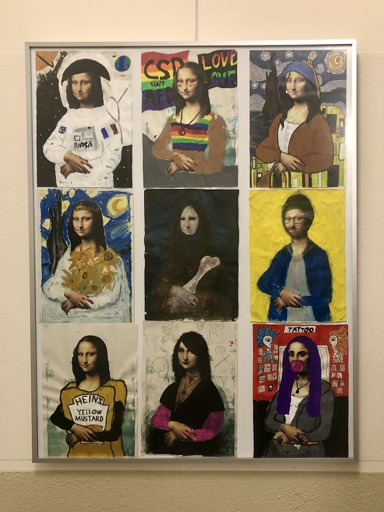 In einem Gemeinschaftsprojekt hat der Jahrgang der 9. Klassen das weltberühmte Portrait der Mona Lisa umgestaltet und zeitgenössisch interpretiert. Die Arbeiten der 9A-9E können ab sofort im 1. OG neben dem Lehrerzimmer betrachtet werden. Kuratiert wurde die Kabinettausstellung von Jutta Pawliczek und Tina Öcal.