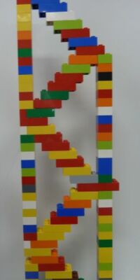 Das sind aus Lego gebaute Modelle von zwei Jungen. Links sieht man eine Wirbelsäule und neben dran zwei Gelenke.