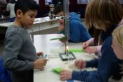 Nach dem Ausprobieren haben sich die Klassen im Chemiehörsaal getroffen und mit Frau Winn über den Tag gesprochen. Die Viertklässler haben erzählt, dass es ihnen gut gefallen hat. Unserer Klasse hat dieses Projekt auch sehr viel Spaß gemacht. Das Projekt ging einen Vormittag lang.