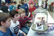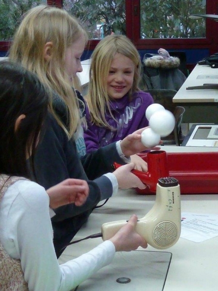 Betreut wurden die insgesamt 14 Experimentierstationen in diesem Jahr von der 6c, deren Fachwissen und freundliche Ansprache seitens unserer Gäste ausdrücklich gelobt wurden. Auch diesmal drehte sich wieder alles rund ums Thema Luft: Wie atmen eigentlich Küken im Ei? Wieviel Luft passt in meine Lunge? Was passiert mit einem Schokokuss im Vakuum? Was ist eigentlich flüssige Luft?