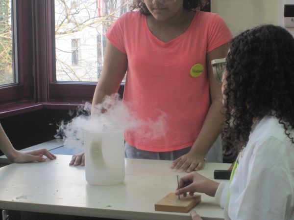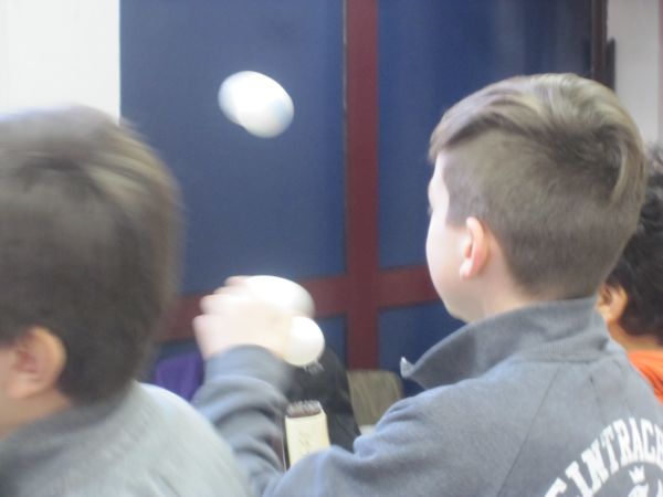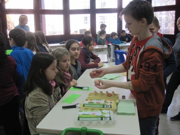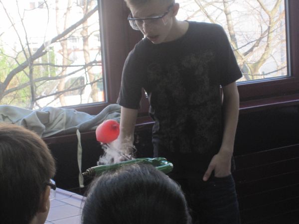 Die Viertklässler konnten zum Beispiel erfahren, was mit einem Schokokuss im Vakuum passiert (und ihn natürlich anschließend vernaschen!), wie man sehr einfach selbst Raketen herstellen und damit schießen kann, wie sich Vögel in der Luft halten oder wie viel Luft sie selbst ein- bzw. ausatmen.