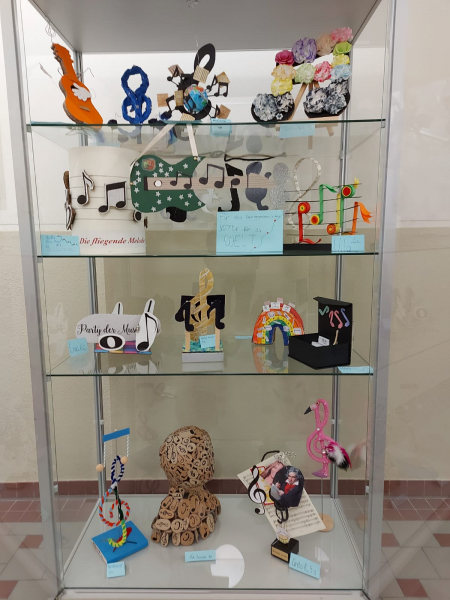 Werft mal einen Blick in die Glasvitrine vor dem Lehrerzimmer! Hier haben die Klassen 5a, 6a und 6c im Distanzunterricht bei Frau Bartella die schönsten Noten-Kunstwerke aus ihren Klassen ausgestellt. Unter dem Motto "Noten für die Welt" sind im Distanzunterricht sehr kreative, kleine Skulpturen entstanden. Hier wird deutlich, wie uns die Musik auch ein bisschen durch die Corona-Zeit "gerettet" hat. Viel Spaß beim Betrachten!