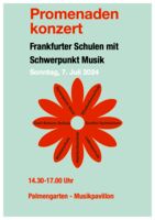 Am Sonntag, 7.7. von 14:30-17:00 treten Ensembles von 7 Frankfurter Gymnasien mit Schwerpunkt Musik an der Konzertmuschel im Palmengarten auf. Die Eli ist mit den Klassen 7d und 7e vertreten und präsentiert ihr Programm ab ca. 15:50. Am Ende gibt es ein gemeinsames Stück mit allen 300 Teilnehmern gemeinsam. Lassen Sie sich überraschen! Eintritt: 3€