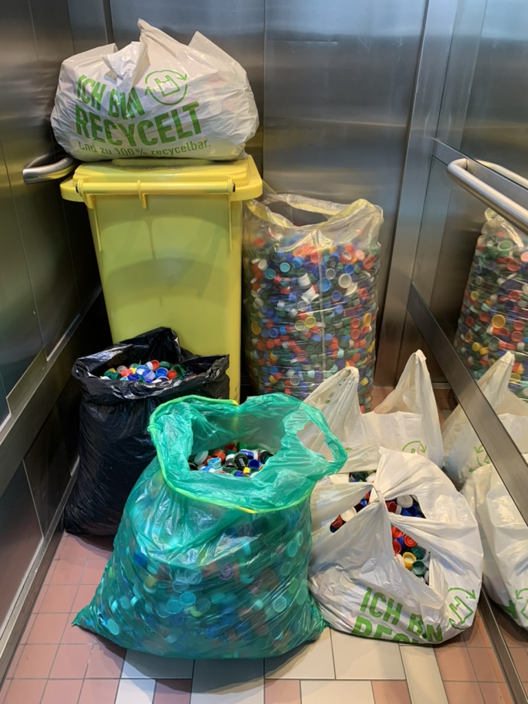Wieso ausgerechnet Plastikdeckel? Plastikdeckel sind ein verwertbarer Rohstoff. Man kann das Plastik recyceln und dann den Rohstoff weiterverkaufen. Aus einem Kilogramm Material kann man so eine Impfung finanzieren. Eine Impfung kostet übrigens 50 Cent. Dies entspricht ungefähr 500 Deckeln. Dank der Bill & Melinda Gates Foundation wird dieser Betrag nochmal verdreifacht, sodass wir durch 51 kg 153 Impfungen finanzieren können.