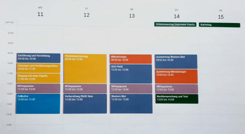 Täglich von 9 bis 15 Uhr haben wir fachliche Anwendungen und Experimente kennengelernt und durchgeführt und nebenbei viel Hilfreiches für unsere Studien- und Berufsorientierung gelernt.