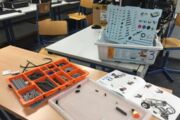 In den 6. Klassen gab es die VDI-Projekte: Robotik, Brückenbau, Elektronik und Solartechnik. In Robotik baut und programmiert man selber Roboter und in Elektronik lötet man. Außerdem kann man in Solartechnik Solarautos bauen, so wie man in Brückenbau eine Brücke baut.