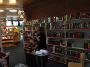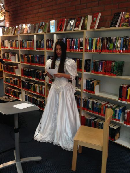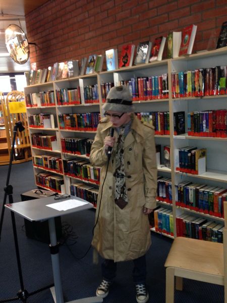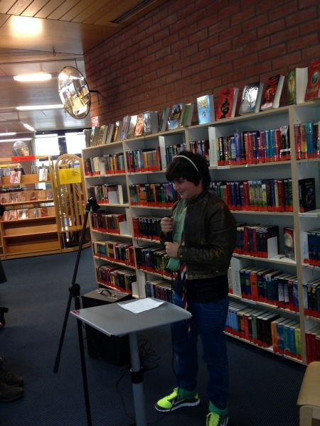 Am Montag, den 28.10.13 fuhren wir (die Klasse 7a) zur Zentralen Kinder- und Jugendbibliothek in Bornheim. Dort begrüßte uns eine sehr nette Bibliothekarin, Frau Schmidt. Sie erklärte uns, wie wir Texte kreativer schreiben und vortragen können. Um es uns zu verdeutlichen, trug sie auch selbst verschiedene Ausschnitte aus Büchern vor. Sie verstellte zum Beispiel ihre Stimme, sodass sie wie ein Mann klang, sprach mal leiser, mal lauter oder machte die passende Gesten zum Text. Hinterher stellte sie uns verschiedene Schreib-Stationen vor, an denen wir selbst kleine Geschichten schreiben sollten. An einer Station sollten wir z.B.Wörter aus einer Salatschüssel „ziehen“ und aus ihnen Geschichten schreiben („Wortsalat“). An einer anderen konnten wir einen Text weiter erzählen („Ketten-Story“). Auf der Homepage der Bibliothek konnten wir auch zwei angefangene Geschichten weiter schreiben („Cliffhanger-Buchshow“). Zum Schluss durften wir unsere Geschichten vortragen, dazu hatten wir die Möglichkeit uns zu verkleiden. Dies war sehr lustig!