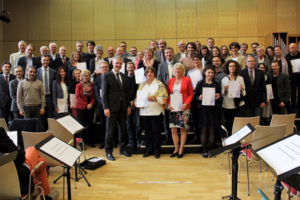 Die vielfältige musikalische Arbeit an der Elisabethenschule ist wieder mit dem Qualitätssiegel des Hessischen Kultusministeriums "Schule mit Schwerpunkt Musik" ausgezeichnet worden. Drei Kolleginnen und Kollegen nahmen im feierlichen Rahmen mit anderen Schule aus Hessen die Urkunde entgegen.