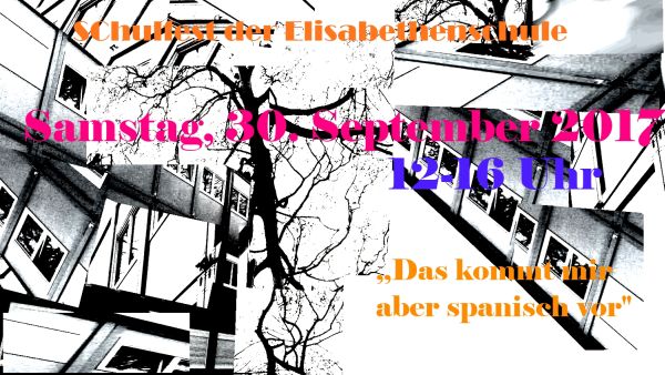 Am 30. September 2017 findet unser nächstes Schulfest statt. Nicht zuletzt weil unser Spanischbereich sein zehnjähriges Bestehen feiert lautet das Motto: "Das kommt uns aber spanisch vor!" Merkt euch diesen Termin schon einmal vor und schaut euch die ungewöhnlichen Plakate an, die dazu im GK-Kunst-Q2-Kurs (SIM) enstanden sind.