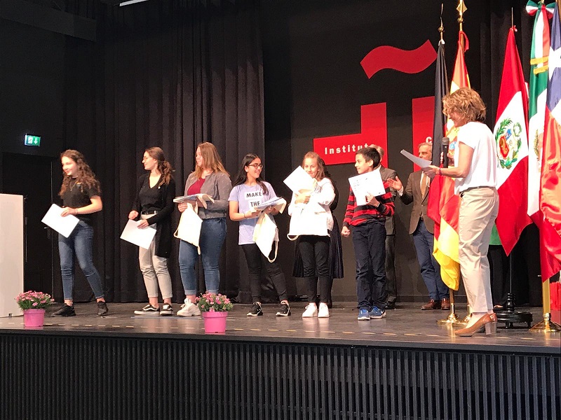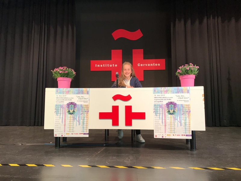Unsere Kandidatin, Tiana Hannowsky (6d), vertrat unsere Schule in der Kategorie A1. Sie ließ sich von den vielen Zuhörern nicht einschüchtern und machte einen sicheren Eindruck. Ihre herausragende Leseleistung wurde schließlich mit Platz 1 belohnt. Die Fachschaft Spanisch und die ganze „Eli“ sind stolz auf Tiana und gratulieren ihr zu diesem riesigen Erfolg!