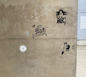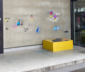 Habt ihr es bemerkt? In der letzten Woche vor den Sommerferien hat die Klasse 5b (jetzige 6b) den Schulhof kreativ verwandelt. Die Mensa und ausgewählte Orte des Schulhofs wurden dabei mit viel Elan und Kreativität von den Schülerinnen und Schülern mit ihren Street Art Werken bereichert. Zuvor entwickelte die Klasse auf eigene Initiative im Kunstunterricht von Frau Einsporn und Frau Öcal ortsspezifische Schablonen und Farbkonzepte für ihr Street Art Projekt. Hier in der Galerie kann man ein paar der Graffitis bewundern.