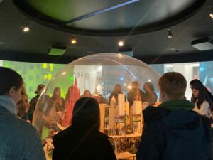 Bevor wir unsere Sachen holten, um auch leider wieder gehen zu müssen, konnten wir noch einen Blick auf eine große Schneekugel werfen, die Frankfurt in Miniatur, aber mit allen vielen Details zeigte.