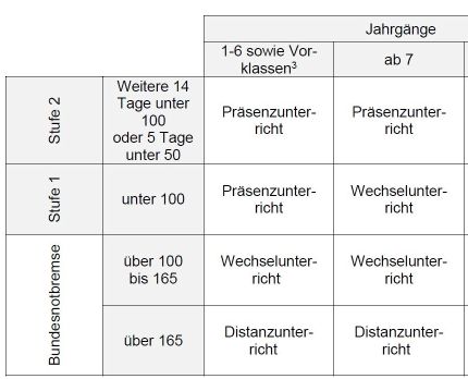 - Die Jahrgangsstufen ab Jahrgangsstufe 7 verbleiben zunächst im Wechselunterricht.
