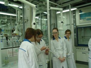 So konnten wir, anknüpfend an unser Unterrichtsthema Genetik, praktische Erfahrungen mit genetischen Arbeitsmethoden sammeln. Als wir von der -von Frau Brunner kommentierten- Rundfahrt im kleinen Bus über das riesige Gelände des Industrieparks Höchst wiederkamen, stärkten wir uns zu guter Letzt in der Kantine mit einer Mahlzeit.