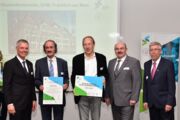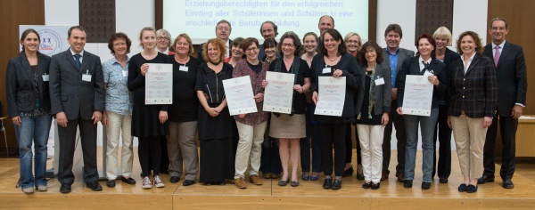 Kultusministerin Nicola Beer, Prof. Dr. Mathias Müller, Vorsitzender der Arbeitsgemeinschaft hessischer Industrie- und Handelskammern und Matthias Gräßle, Geschäftsführer der Arbeitsgemeinschaft hessischer Industrie- und Handelskammern, überreichten am Montag, 02. September 2013 in der IHK Frankfurt am Main 30 hessischen Schulen, darunter auch der Elisabethenschule, das „Gütesiegel Berufs- und Studienorientierung Hessen". Herzlichen Glückwunsch.