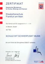 Seit Februar 2005 ist die Elisabethenschule als eine "Schule mit Schwerpunkt Musik" zertifiziert und immer wieder rezertifiziert worden.