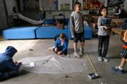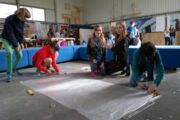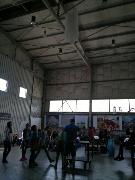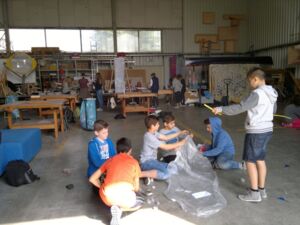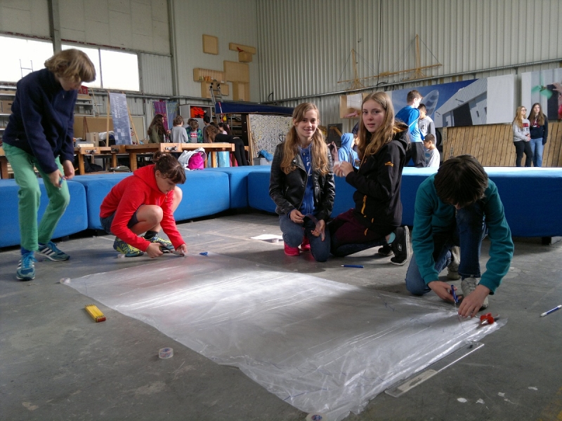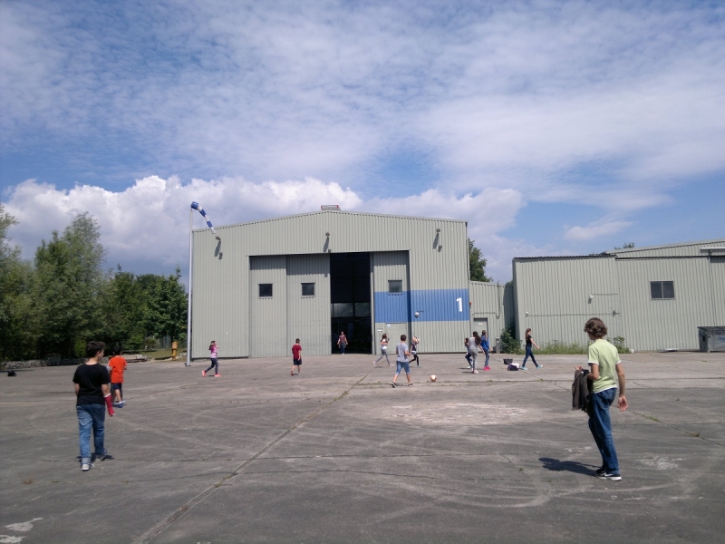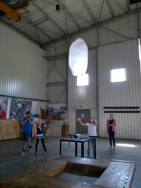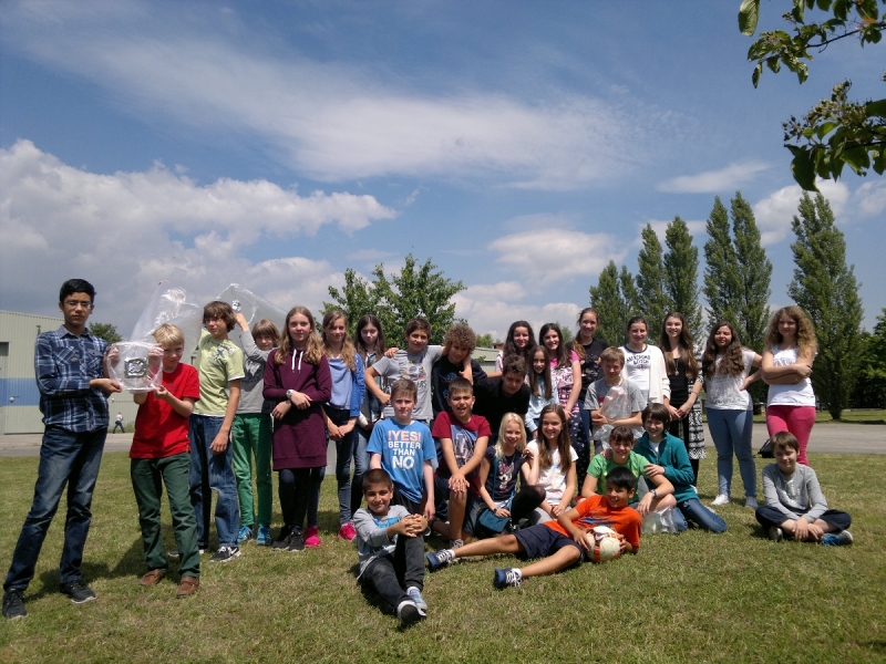 Nach zwei Stunden Teamwork war es dann so weit: Werden die fertigen Heißluftballons tatsächlich aufsteigen? Die Spannung stieg, als die Brennpaste entzündet wurde, um die Luft im Ballon zu erwärmen. Endlich Erleichterung, die Mühe hatte sich gelohnt. Alle gebauten Heißluftballons stiegen gemäß des physikalischen Gesetzes „Warme Luft steigt auf“ bis an die Decke im alten Hangar (Warum das so ist, kann Ihnen/euch die 6a als Experten des Teilchenmodells genauer erklären). Die 6a jubelte über den Erfolg und feierte ihn bei strahlendem Sonnenschein auf dem alten Flugplatz in der schönen Umgebung des Grüngürtels.