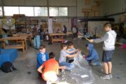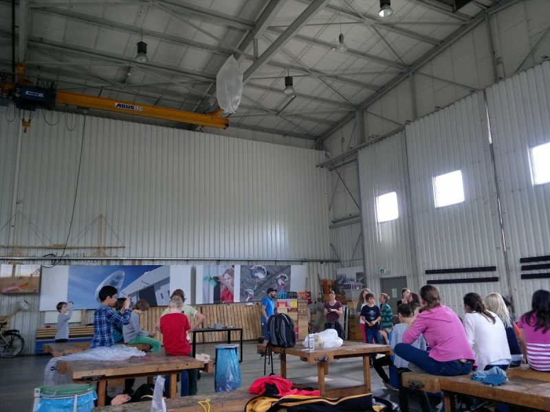 Aus Plastikfolie, Tesafilm, Draht, Brennpaste und einem Aluminiumschälchen einen Heißluftballon bauen? Wie soll das denn gehen? Zunächst waren die SchülerInnen skeptisch, doch schnell machten sich alle mit großem Ehrgeiz an die Arbeit. Unterstützt und motiviert wurden Sie dabei von einem Mitarbeiter der Aeronauten-Werkstatt, welcher zu Beginn des Workshops eine interessante Einführung über die Geschichte der Ballonfahrt und die Funktionsweise von Heißluftballons gab.