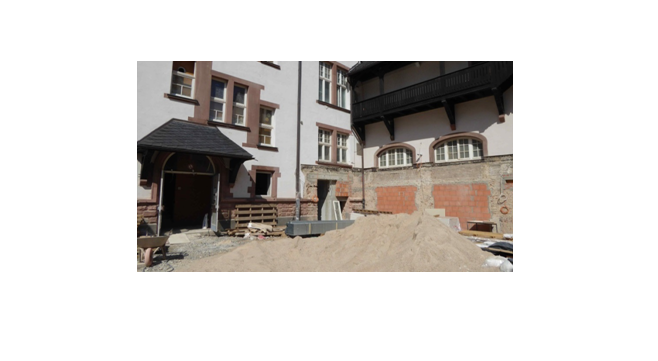 Der große Kran auf dem Schulhof ist schon abgebaut. Der Austausch der Decken und Böden ist im gesamten Schulgebäude erfolgt, die Rohbauarbeiten und auch die Elektro- und die Sanitärinstallation sind abgeschlossen. Auch der Estrich ist schon fertig.