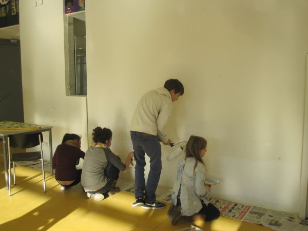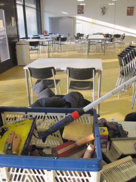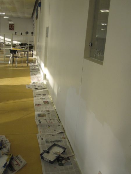 Am Freitag hat das Kunfood-Team begonnen eine Wand in der Cafeteria zu tapezieren. Es soll schöner und gemütlicher werden - für alle, die dort essen und sich aufhalten!