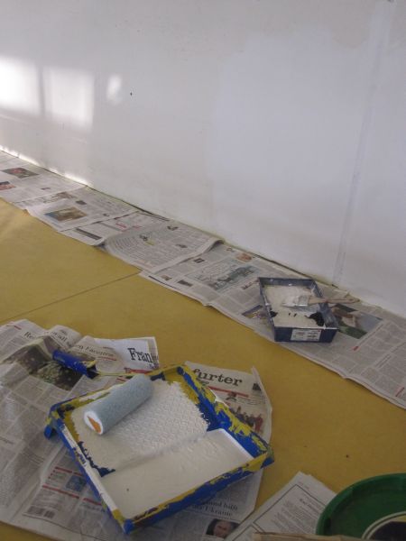 Dabei gab es viele freiwillige Helfer. Nächste Woche ist der Rest der Wand dran!