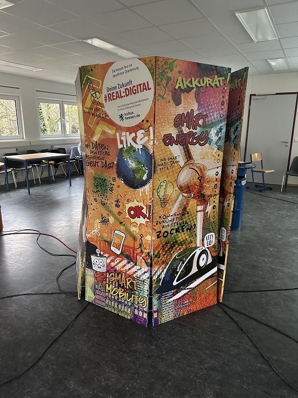 Mit unserem besonderen Fokus auf der Berufsorientierung an der Elisabethenschule bereiten wir damit auch inhaltlich das Praktikum im 2. Halbjahr der 9. Klasse vor. Denn wie sich zeigte, fördert der Workshop die Kenntnisse und das Interesse an digitalen Arbeitsbereichen der Zukunft. Folglich hatten die Schülerinnen und Schüler viel Spaß an der Bearbeitung der Themen an den jeweiligen Stationen und in den gemeinsamen Gesprächen. Weitere Informationen zu dem Workshop findet man auf der folgenden Webseite: Deine Zukunft#REAL:DIGITAL | kultus. hessen.de