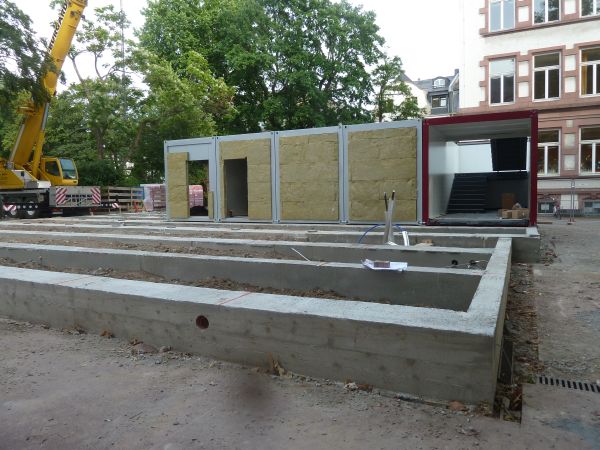 Die Container sind da! Am Montag, 16. Juni 2014 wurden die ersten Containerelemente auf dem Schulhof aufgestellt.