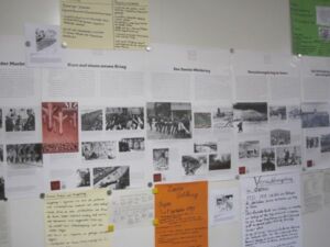 Aus Anlass des 100-jährigen Gedenkens an den Ausbruch des Ersten Weltkrieges, des 75-jährigen Gedenkens an die Entfesselung des Zweiten Weltkrieges, der friedlichen Revolution in Deutschland vor 25 Jahren und der EU-Osterweiterung vor zehn Jahren haben Schülerinnen und Schüler des Grundkurses Geschichte Q1 mit ihrer Lehrkraft, Herrn Dr. Max, eine Ausstellung zum Thema „Diktatur und Demokratie im Zeitalter der Extreme. Streiflichter auf die Geschichte Europas im 20. Jahrhundert“ erarbeitet.