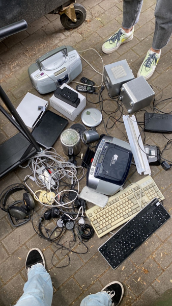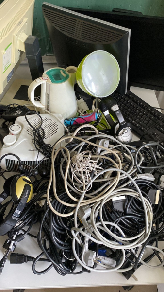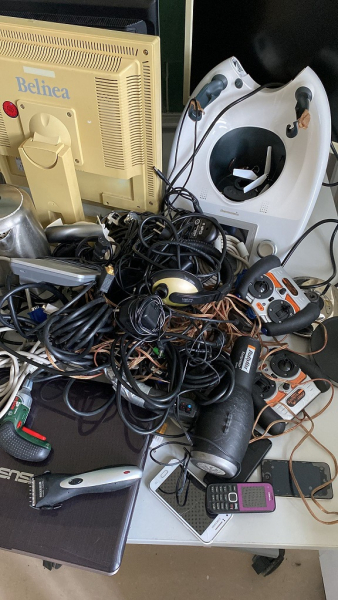 Dank der allgemein großen Unterstützung hat die Eli zwei große Müllcontainer an die FES übergeben können; von der Elektrozahnbürste, über elektrische Kochtöpfe und veraltete Router bis hin zu Tablets und Mobilgeräten war da wirklich alles dabei.