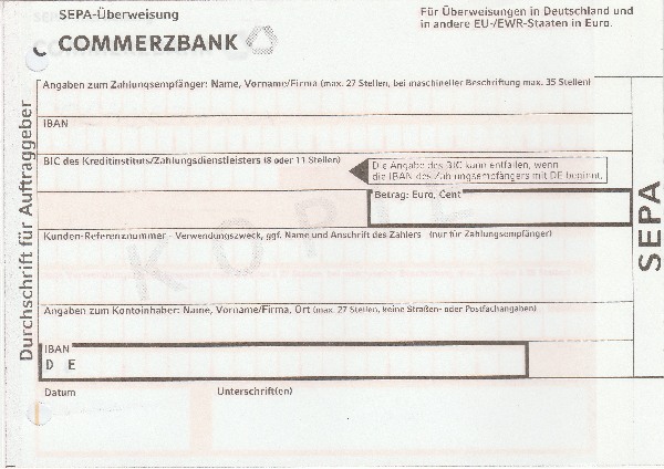 Bis zum 31. Januar 2016 konnte man im Inland auch mithilfe der Bankleitzahl, der Kontonummer und der Kundennummer Überweisungen anfangen. Ab den 1. Februar kann man nur die IBAN-Nummer benutzen.